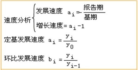 15.發展速度:報告期發展水平與基期發展水平之比,用于描述現象在觀察期內的發展變化程度。 分為定基發展速度和環比發展速度