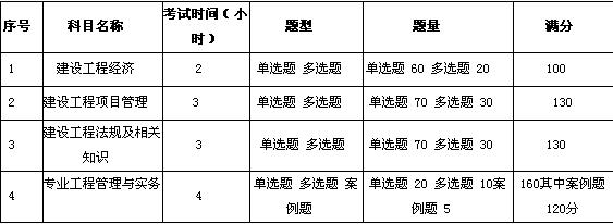 一級(jí)建造師執(zhí)業(yè)資格考試設(shè)《建設(shè)工程經(jīng)濟(jì)》、《建設(shè)工程項(xiàng)目管理》、《建設(shè)工程法規(guī)及相關(guān)知識(shí)》、《專業(yè)工程管理與實(shí)務(wù)》這4個(gè)科目。其中《專業(yè)工程管理與實(shí)務(wù)》科目設(shè)置10個(gè)專業(yè)類別:建筑工程、公路工程、鐵路工程、民航機(jī)場工程、港口與航道工程、水利水電工程、市政公用工程、通信與廣電工程、礦業(yè)工程、機(jī)電工程。