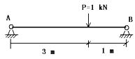 但這道題也可不必計算,由分析得答案。因支座A、B反力總和為1 kN,故RA不可能為1kN;又由荷載P不作用于跨中,RA與RB不應相等,故RA不可能是1/2 kN.剩下3/4與1/4中挑一個,顯然RA離P作用點較遠,受力應小一點,故只有1/4是正確的,答案應為D.