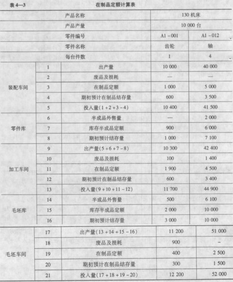 【例8】 某機(jī)床企業(yè)運(yùn)用在制品定額法來(lái)確定各車間的生產(chǎn)任務(wù),相關(guān)數(shù)據(jù)及計(jì)算如表4—3所示。