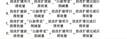 4、在統(tǒng)計(jì)污染物排放量的過(guò)程中,對(duì)于技改擴(kuò)建項(xiàng)目,應(yīng)算清新老污染源“三本賬”,其相互關(guān)系表示正確的是( )。