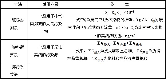 大氣污染源調查方法一般有三種:現場實測法、物料衡算法、排污系數法,見表4-4.