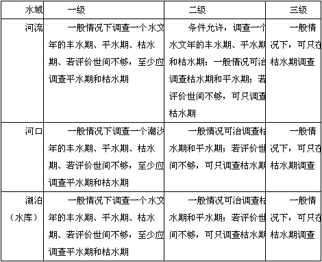 ③當被調查的范圍內面源污染嚴重,豐水期水質劣于枯水期時,一、二級評價的各類水域應調查豐水期,若時間允許,三級也應調查豐水期。