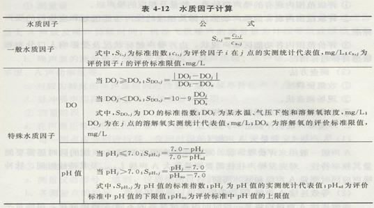 表4—12 水質因子計算